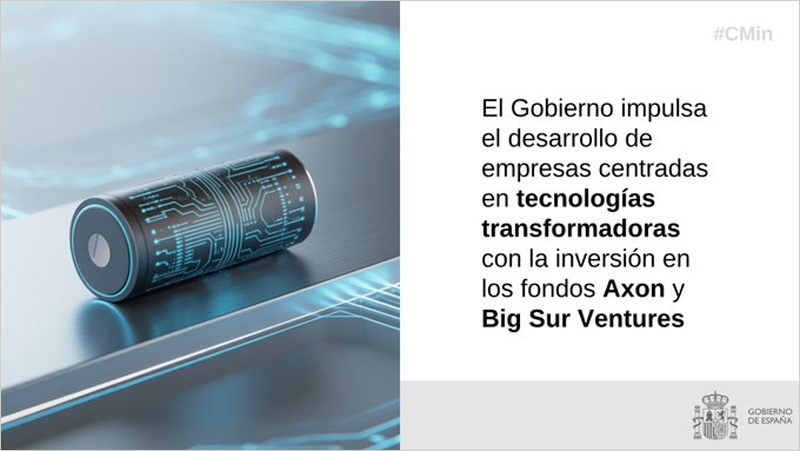 El Consejo de Ministros ha autorizado al Ministerio para la Transformación Digital y de la Función Pública, a través de la Sociedad Española para la Transformación Tecnológica (SETT), a participar en los fondos españoles Axon Innovation Growth y Big Sur Ventures, con 85 y 40 millones de euros respectivamente. El objetivo es impulsar startups y scale-ups cuyo negocio está centrado en tecnologías transformadoras.