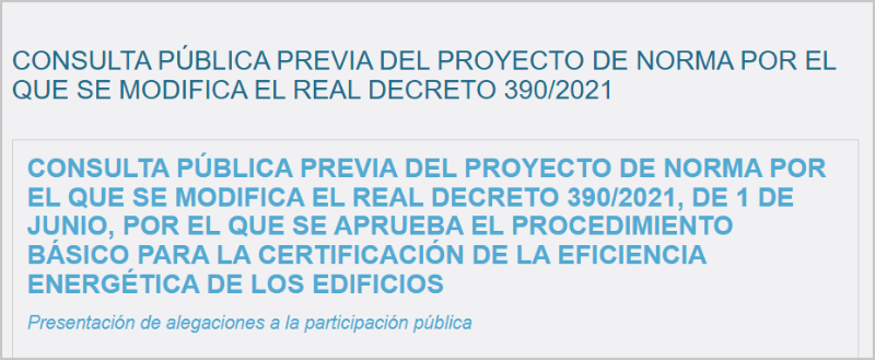 Los ciudadanos, profesionales y empresas tienen hasta el 6 de febrero de 2026 para remitir comentarios y sugerencias sobre el proyecto de Real Decreto que modifica el RD 390/2021, de 1 de junio. La revisión normativa responde a la necesidad de mejorar la eficiencia energética y avanzar en la descarbonización del parque inmobiliario, cumpliendo con los objetivos climáticos y energéticos de la Unión Europea. También se adapta a la Directiva (UE) 2024/1275, cuya transposición en España deberá completarse antes del 29 de mayo de 2026.