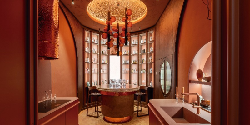 El espacio incorpora el Gira Push Sensor 4 (PS4) en acabado Bronze y la interfaz Gira G1, soluciones que facilitan el control inteligente de iluminación y otros sistemas. Lejos de ser elementos técnicos secundarios, estos mecanismos se convierten en herramientas narrativas que acompañan la experiencia del usuario, reforzando el carácter orgánico y cambiante del proyecto.